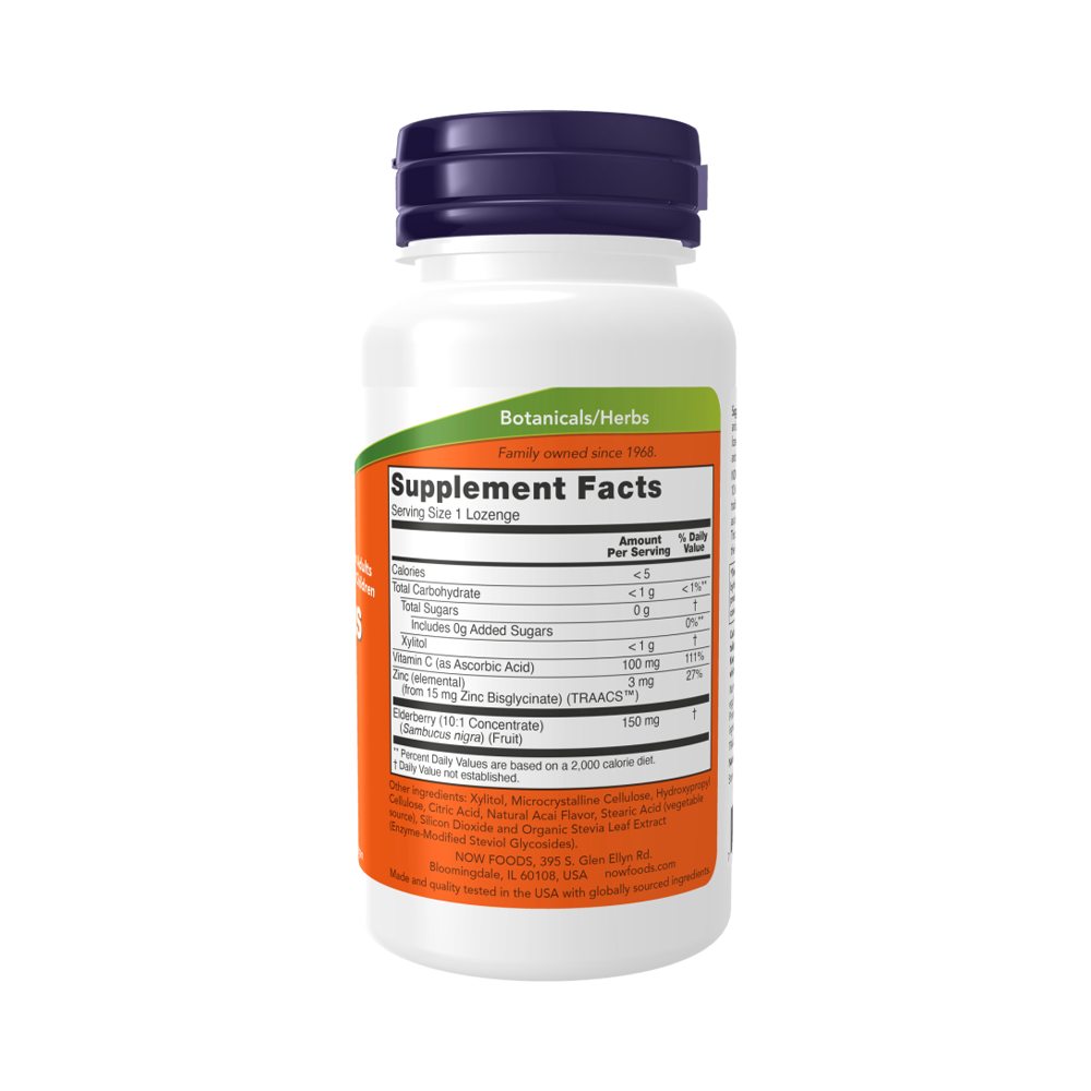NOW Sambucus Zinc-C, Бузина Цинк-С, 60 таблеток
