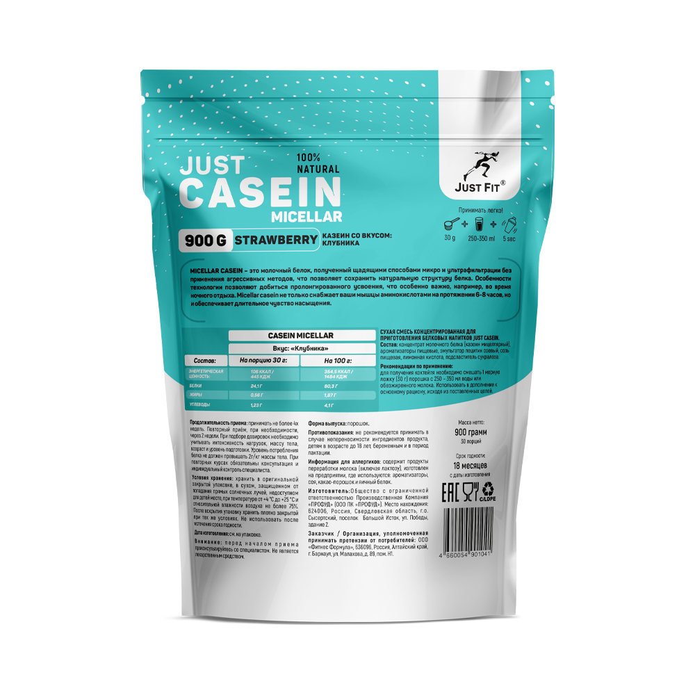 Just Fit Casein Micellar 900 грамм предлагает ряд преимуществ для спортсменов и тех, кто стремится поддерживать или нарастить мышечную массу.